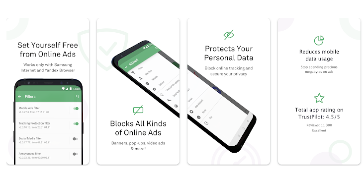 AdGuard Content Blocker is a free Android app that blocks ads in the Yandex browser and Samsung Internet mobile browser without root permissions. This AdGuard’s ad-blocking app works specifically in these two web browsers.