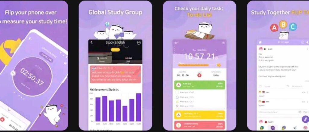 Global study time management; Flip! Study hard study fun! Get FLIP now!