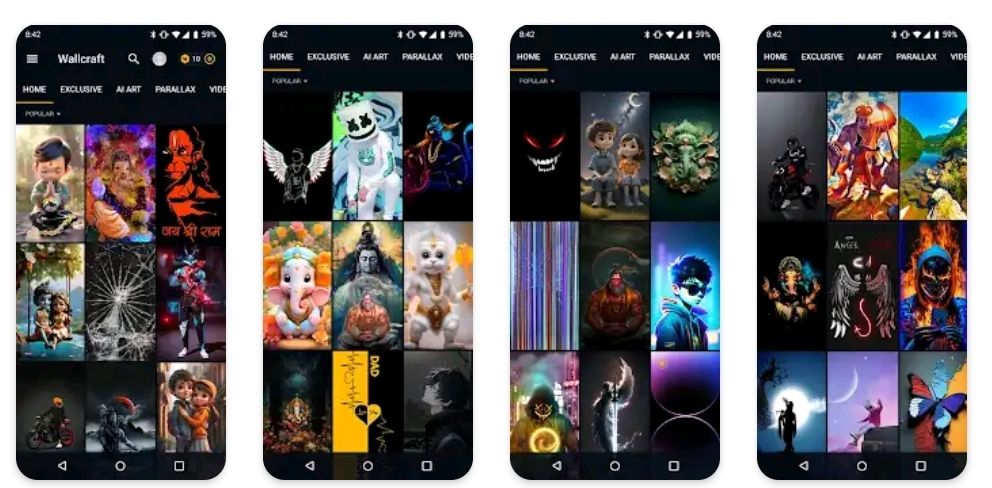 In the Wallcraft application, only wallpapers suitable for the size of your screen will be displayed for you. All images are of high quality with various resolutions. Support for any device, including devices with large screens: 1080×1920 px (Full HD, 1080p) and 2160×3840 px (Ultra HD, 4K).